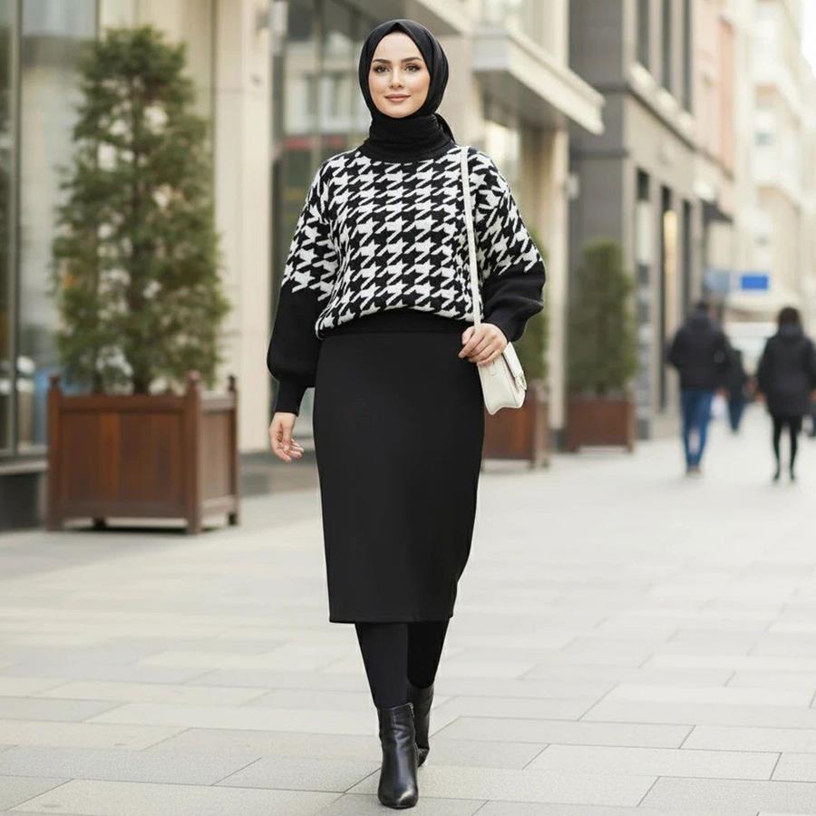 ست بلوز و دامن بافت زنانه Sevda_Black مدل 3830